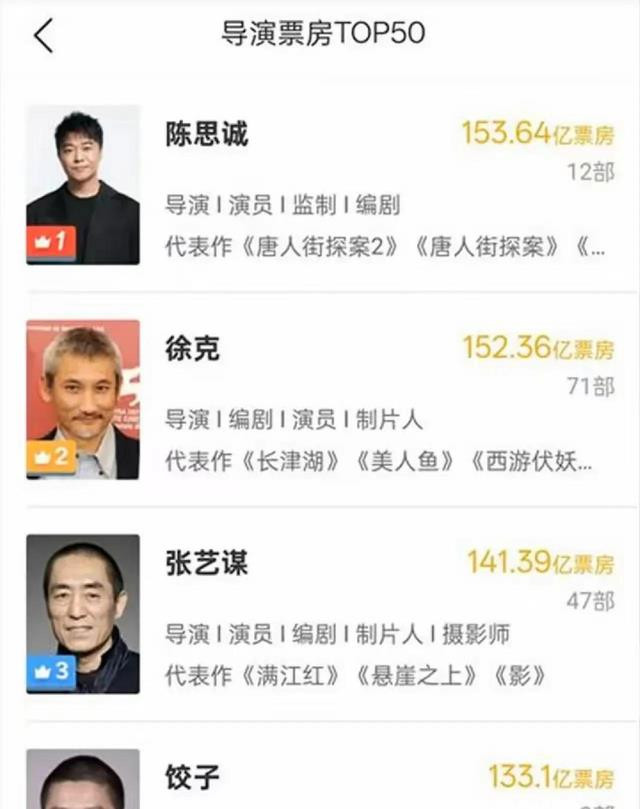 如今饺子已稳居中国导演的票房榜第四名,距离超越张艺谋仅一步之遥。